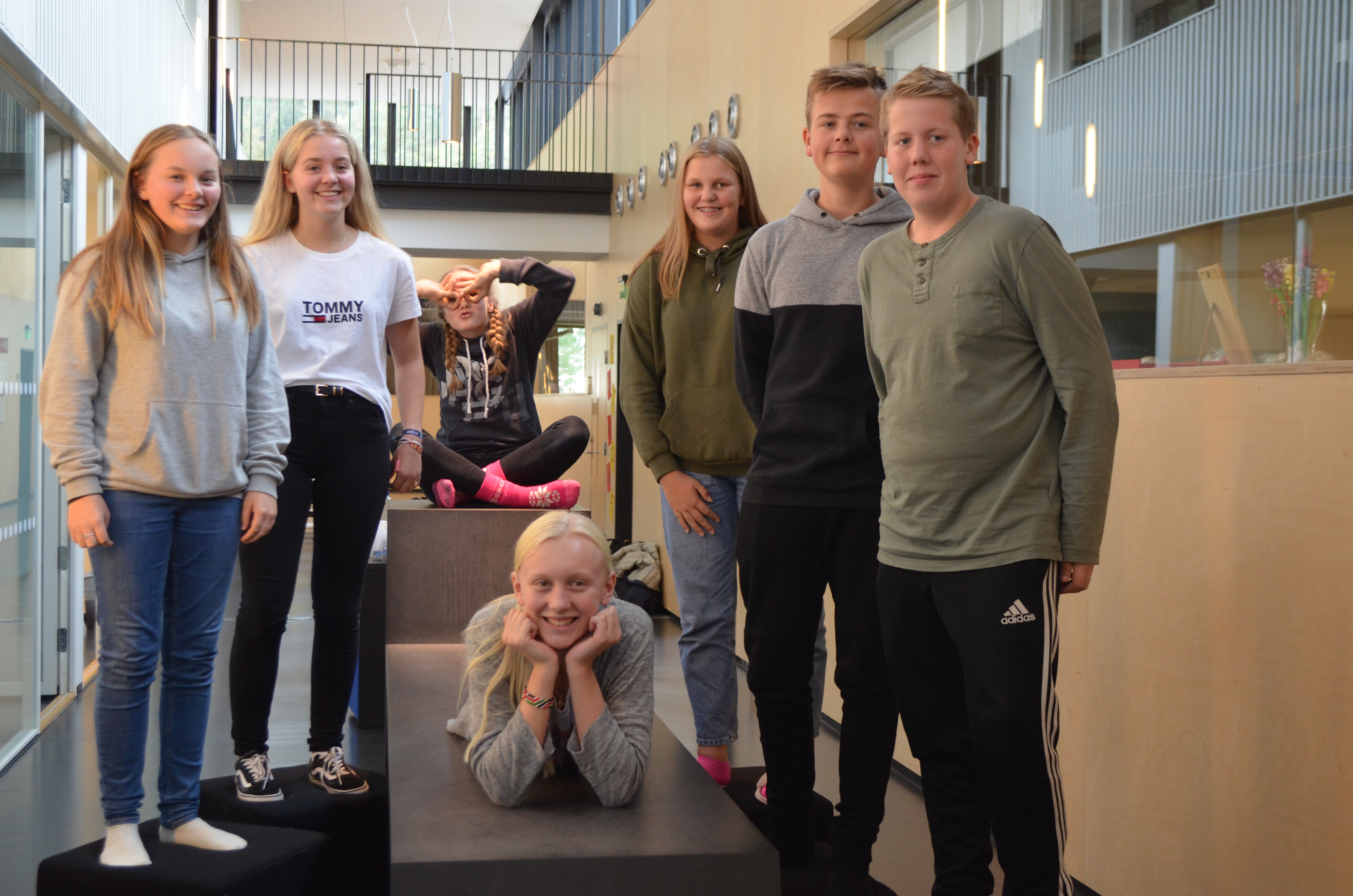 Biletet viser det flotte styret i skulelaget ved Tonstad skule for skuleåret 2018/19. Frå venstre: Siv Jorunn, Tøri, Tonje, Grete Sofie, Erling André og Stein Ivar. Fremst ser me Aurora, som er leiar i styret.