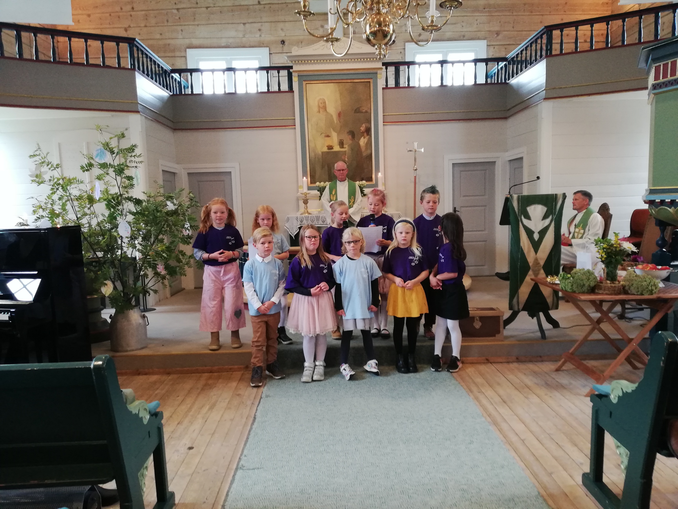 Både på Kvæven og på Tonstad hadde me i forkant av gudstenesta ei samling med dei inviterte borna. Då førebudde me oss til gudstenesta. Me opna skattekista og høyrde fortellinga om dei ti spedalske som Jesus gjorde friske, men kor berre ein kom attende for å seie takk.