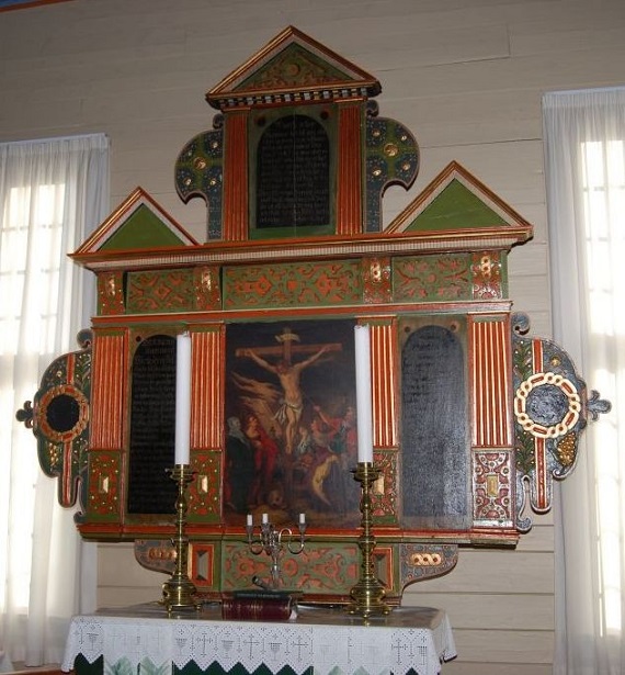 Altartavla og preikestolen er frå 1620, og måla av den kjende renessansekunstnaren Gottfried Hendtzschel i 1637. Han har mellom anna òg smykka ut kyrkjene på Ogna og i Sokndal. Altartavla og preikestolen har tidlegare stått i Lund kyrkje på Moi og i Bakke kyrkje. Altartavla skal òg ha stått i det vesle kapellet som stod på Lunde før kyrkja blei bygd. Tavla har blitt overmalt fleire gonger. I 1840 skal den ha vore rosemåla, men allereie året etter på fekk den fire strøk med gråvkvit maling med eit gyldent kross på midtfeltet. I 1930 blei altartavla restaurert og den fekk tilbake dei opphavelege fargane som Hendtzschel hadde gitt ho.