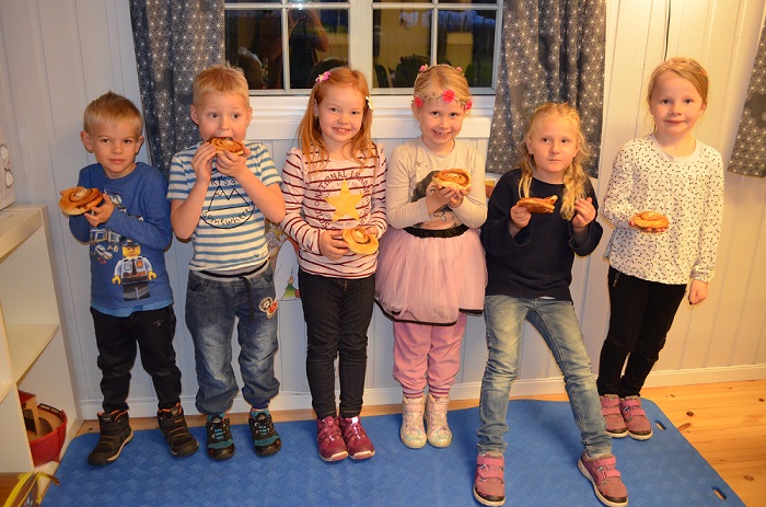 Fredagen før hadde me samling med inviterte 6 åringar i kyrkjestova. Der fekk dei høyra fortellinga om dei ti spedalske som Jesus gjorde friske. Sidan det var tid for hausttakkefest, fokuserte me på samaritanaren som kom tilbake for å takka Jesus. Borna fekk vera med på å leika denne fortellinga, og var veldig ivrige og flinke! På sundag var dette ein del av preika i kyrkja.