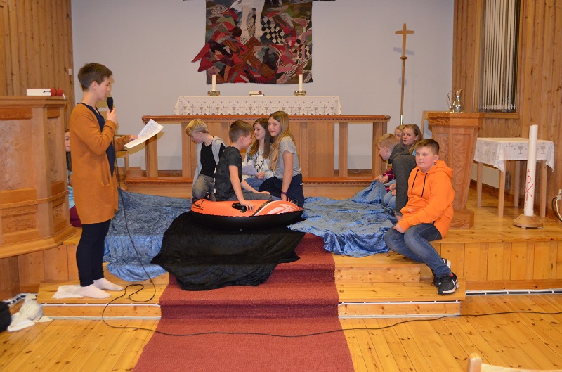 På gudstenesta var 6.klassingane med på å lesa teksta, samlingsbøn og dramatiserte søndagens tekst på ein veldig fin måte.