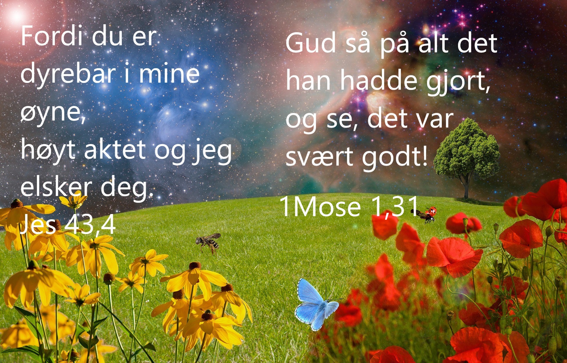 Så mange steder i Bibelen står det: «Gud er kjærlighet». Han elsker oss mennesker. Jesus sa igjen og igjen hvor viktig det er at vi elsker hverandre. Fordi kjærlighet gjør verden varmere, vennligere, mer verdt å leve i. «Elsk din neste som deg selv.» sa han! Også den som irriterer deg og den du absolutt ikke liker. Da vil jeg helst svare: Kjære Jesus, det er faktisk ikke så lett. Her har jeg mine grenser.